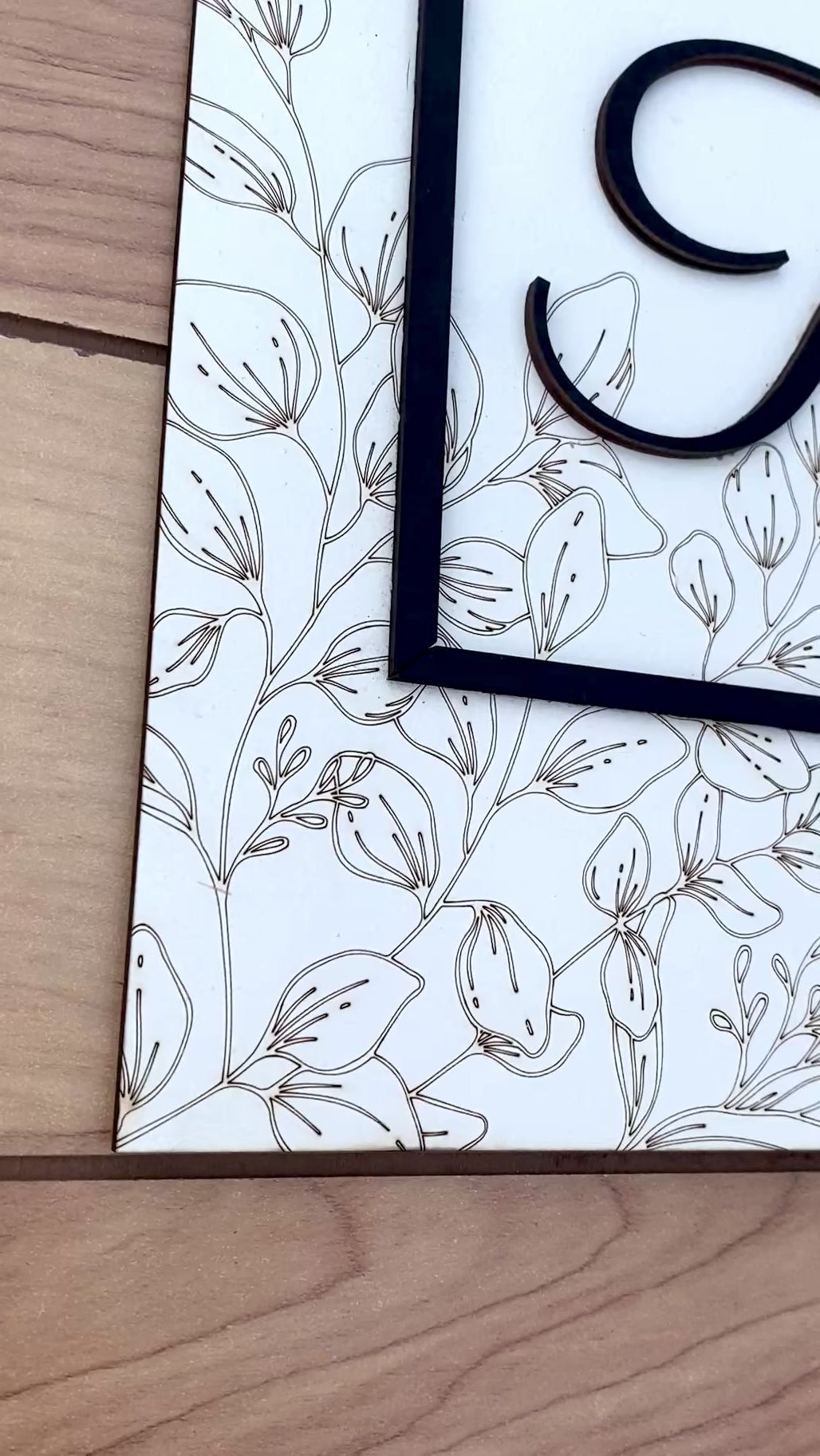 Welcome your family home with this charming wooden name sign, featuring delicate engraved greenery that adds natural elegance to any entryway. Hand-painted in crisp white with bold black lettering, it's customizable to showcase your family's unique name and personal style. Also perfect as a wedding gift, this timeless piece celebrates what makes a home yours —warm, inviting, and distinctly yours.